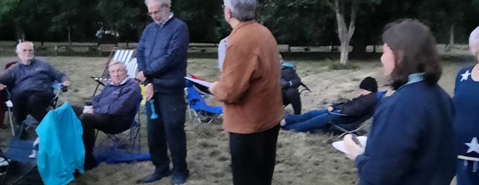 As the evening darkened, Bob Lambourne stepped forward. He recalled how Wycombe Astronomical Society had had a very sticky start. In 1981 an advertisement was placed in a local newspaper calling for anyone with an interest in astronomy to meet up. Only one person responded! Undeterred, a second advertisement was posted and this time thirty people replied and from that second meeting, (actually held on the day of the Summer Solstice, 21st June 1981) our Society formally came into existence.